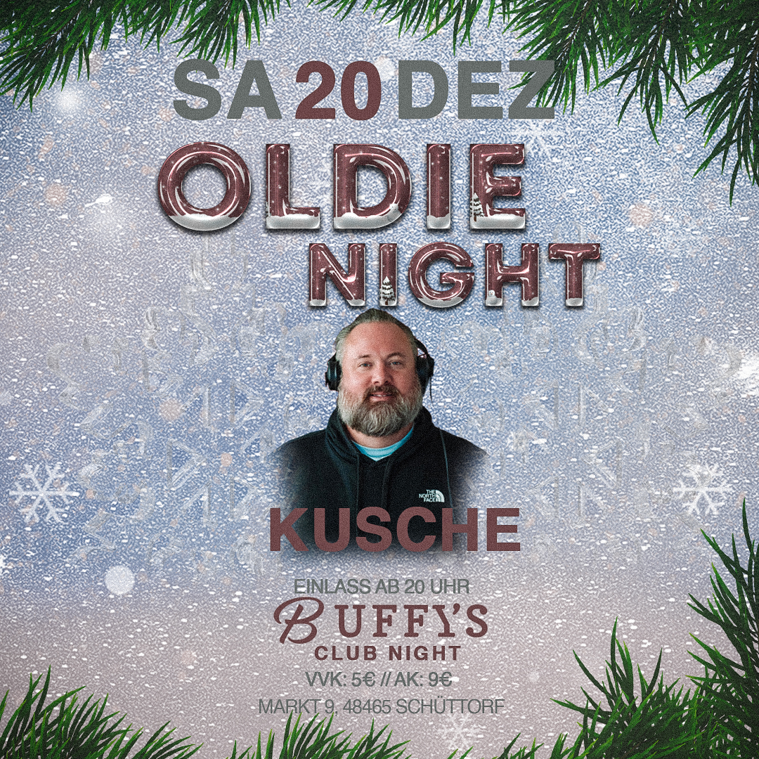 Club Night - Ü40 Version (Oldie Night) Am 20. Dezember verwandeln wir das Buffys in einen Club. Damals besser bekannt als Oldie Night, wollen wir die alten Erinnerungen nochmal aufwecken. DJ Kusche sorgt an den Turntables für die besten Beats, dazu gibt es zusätzliche Lichtinstallationen, Tanzfläche und echtes Clubfeeling. Wir rollen den roten Teppich aus und feiern gemeinsam mit allen, die gemeinsam auf die Feiertage anstoßen wollen oder über die Feiertage zurück in die Heimat kommen. Tickets: 5 € im Vorverkauf Begrenzt auf 150 Stück – also rechtzeitig sichern. "Wir brauchen euch auf der Tanzfläche! Sollte die Mindestanzahl an Tickets nicht erreicht werden, müssen wir das Event leider rechtzeitig absagen – gekaufte Tickets bekommt ihr natürlich zurück."